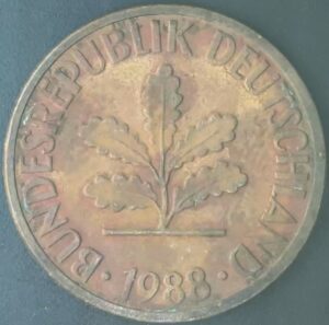 KM#106A F – ALEMANHA 2 PFENNIG 1988 “letra F” MBC