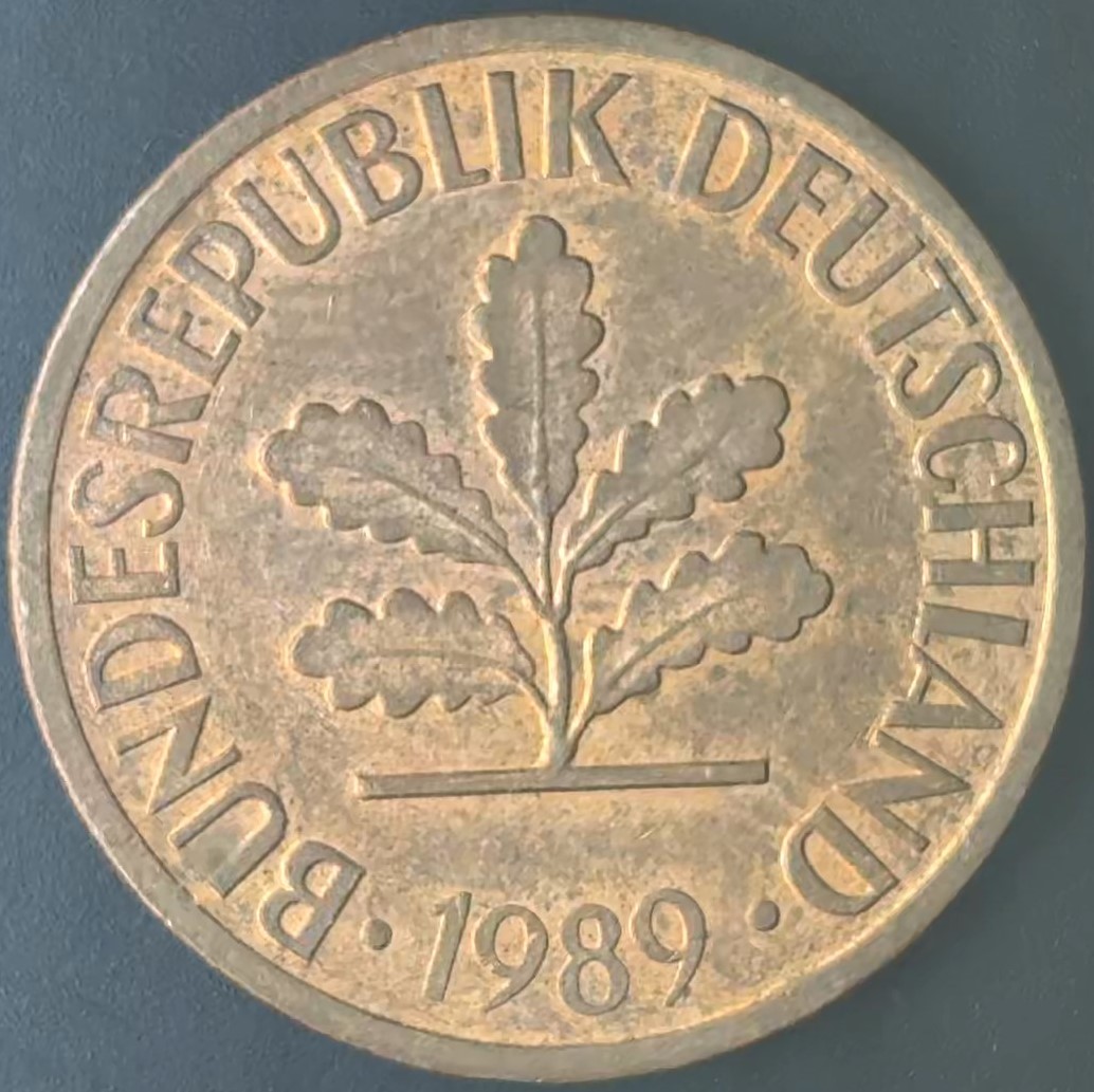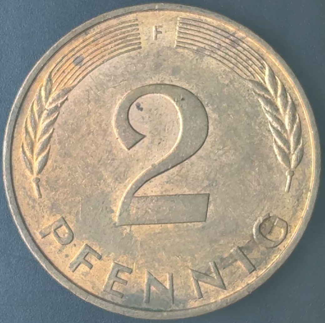 KM#106A F – ALEMANHA 2 PFENNIG 1989 “letra F” MBC