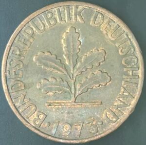 KM#106A J – ALEMANHA 2 PFENNIG 1973 “letra J” MBC