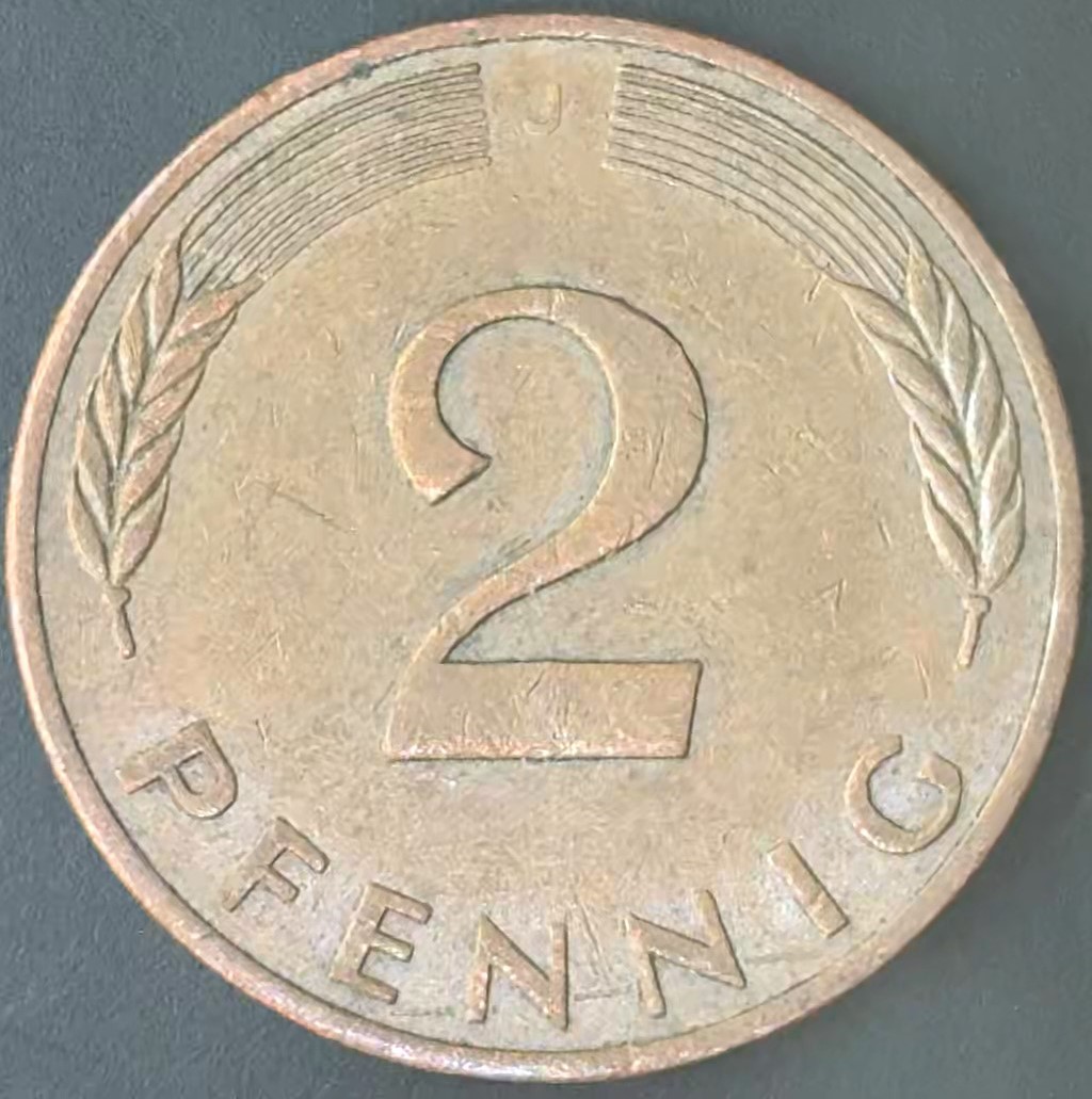 KM#106A J – ALEMANHA 2 PFENNIG 1978 “letra J” MBC