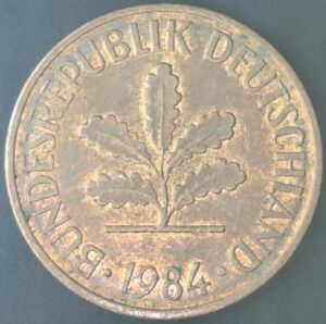 KM#105F – ALEMANHA 1 PFENNIG 1985 “letra F” MBC