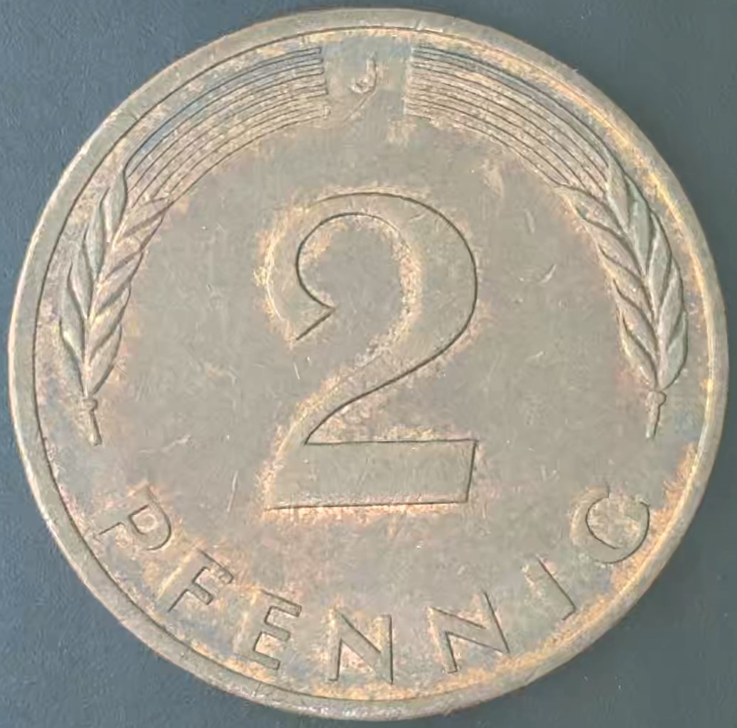 KM#106A J – ALEMANHA 2 PFENNIG 1984 “letra J” MBC