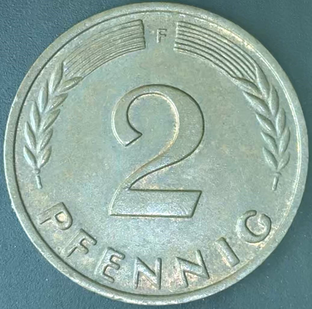 KM#106 F – ALEMANHA 2 PFENNIG 1964 “letra F” MBC (BRONZE)
