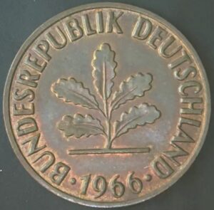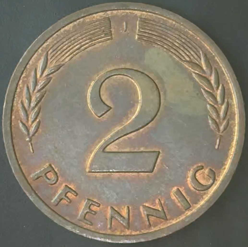 KM#106 J – ALEMANHA 2 PFENNIG 1966 “letra J” S (BRONZE)