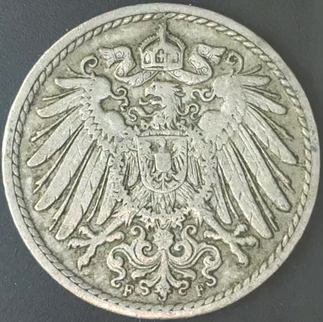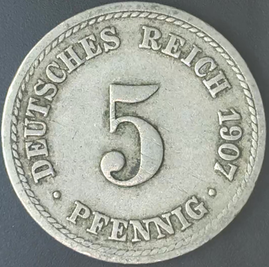 KM#11 F – ALEMANHA 5 PFENNIG 1907 “letra F” MBC