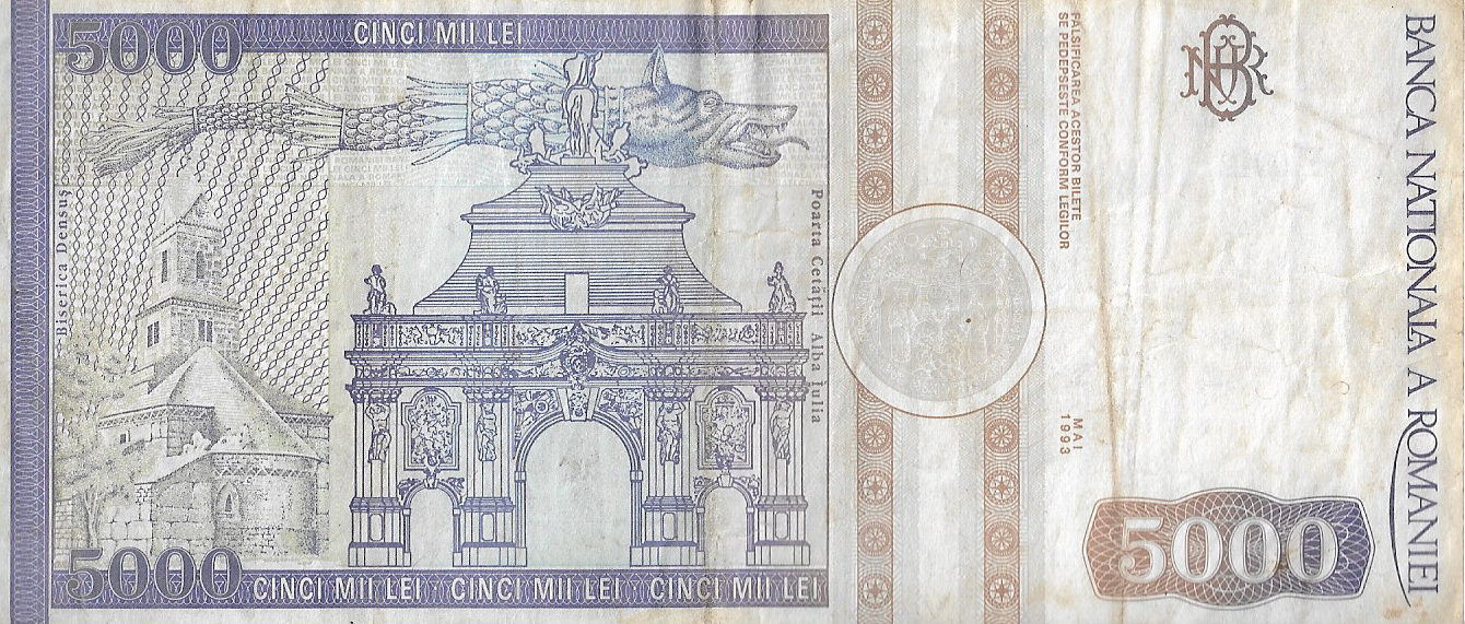 P 104 – ROMENIA 5000 LEI 1993 MBC