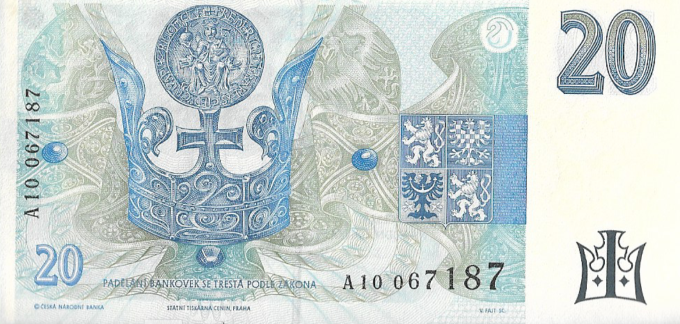 P 10a – REPÚBLICA TCHECA 20 KORUN FE