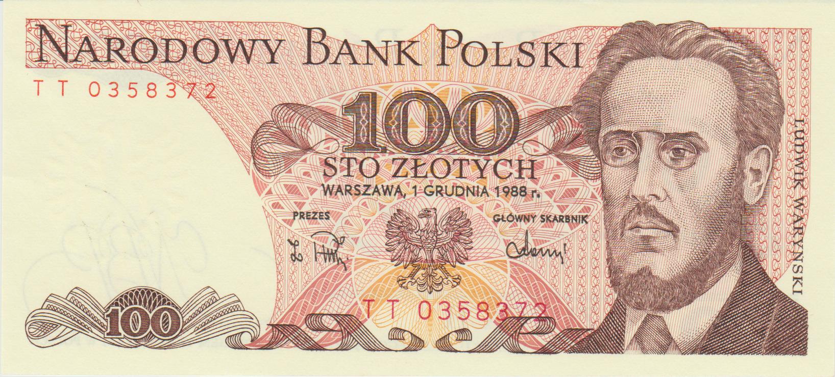 P 143e2 – POLONIA 100 ZLOTYS 1988 FE