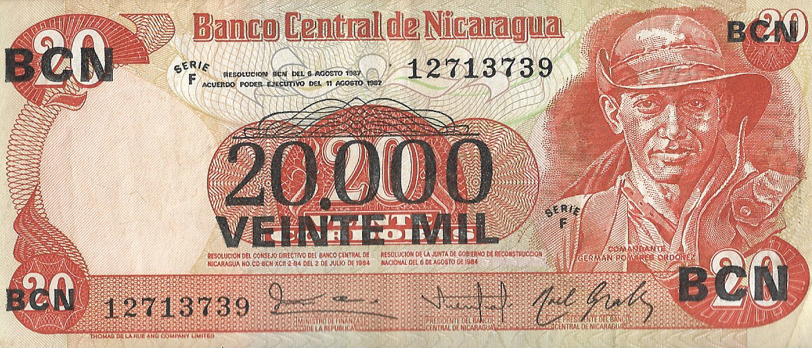 P 147-2 – NICARAGUA 20.000 CORDOBAS 1987 FE