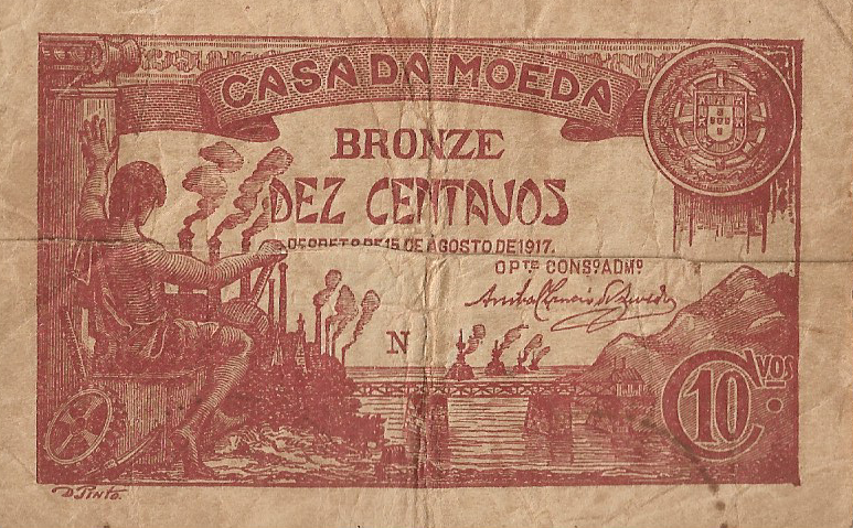 P 96 – PORTUGAL 10 CENTAVOS (BRONZE) 1917 MBC