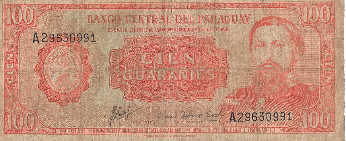 P 199 – PARAGUAI 100 GUARANI 1963 BC