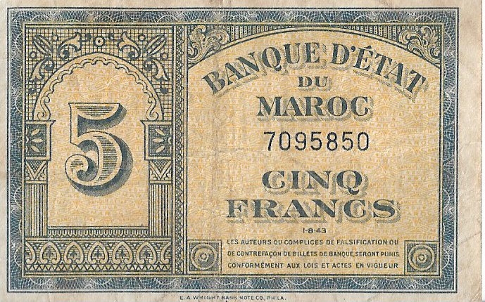 P 24 – MARROCOS 5 FRANCS 1943 MBC