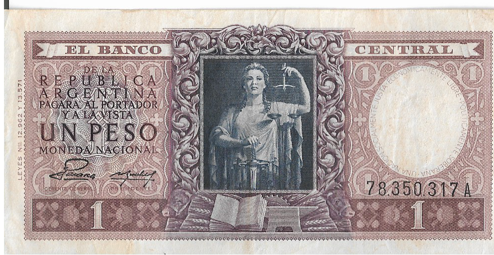 P 260a – Argentina – 1 PESO 1952-1955 – MBC