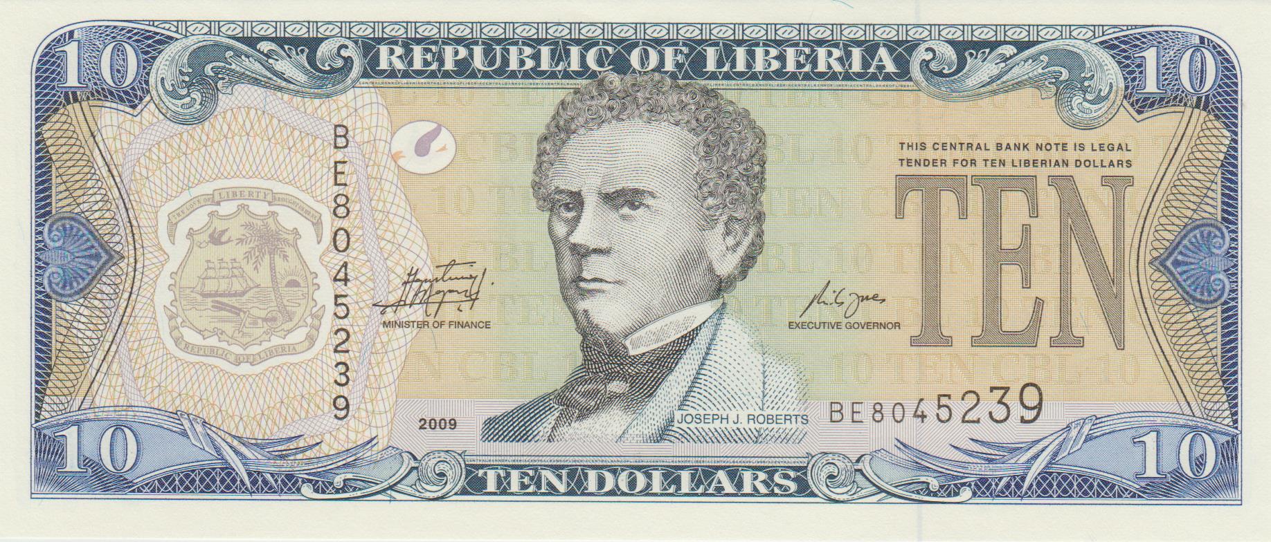 P 27e – LIBERIA 10 DOLLARES 2009 FE