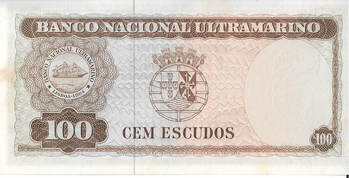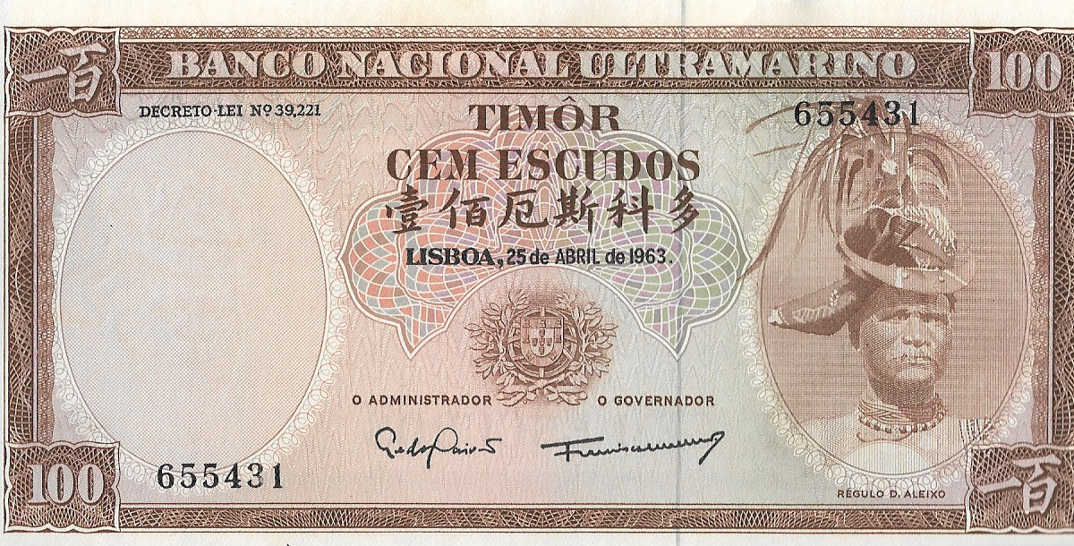P 28f – TIMOR LESTE 100 ESCUDOS 1963 FE (leves manchas)