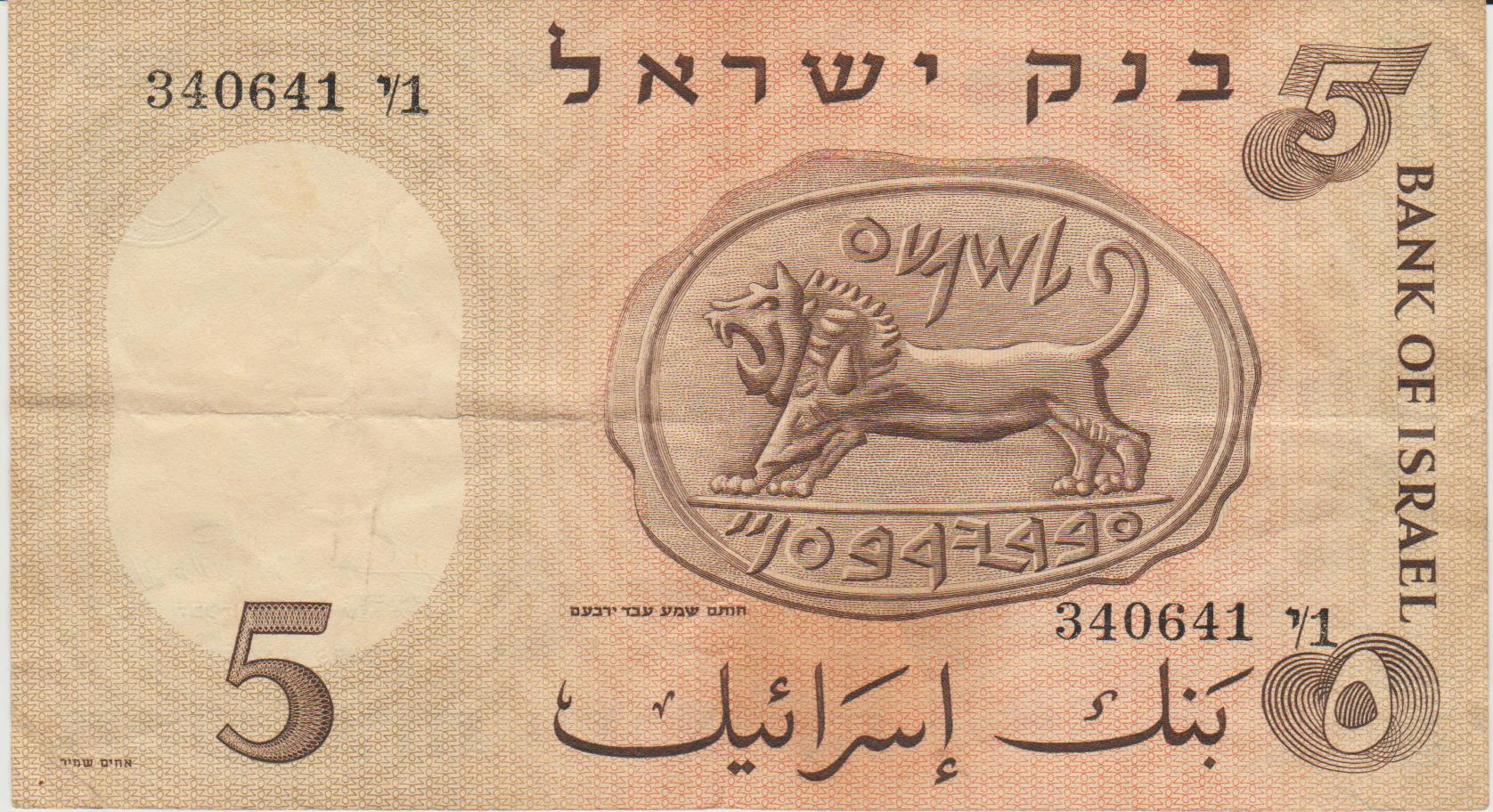 P 31a ISRAEL 5 ISRAELI POUNDS 1958 MBC