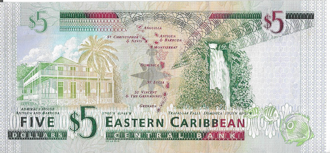 P 31v – SAO VICENTE E GRANADINAS 5 DOLLARS 1994 FE