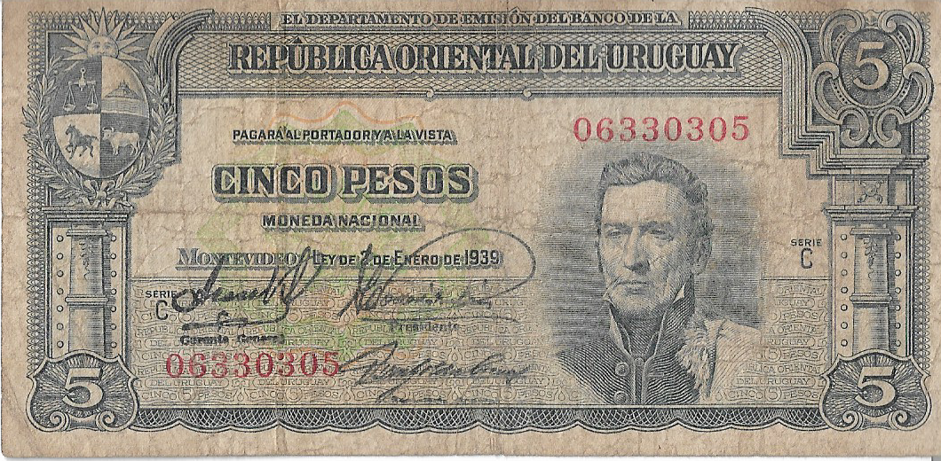 P 36b – URUGUAI 5 PESOS 1939 MBC