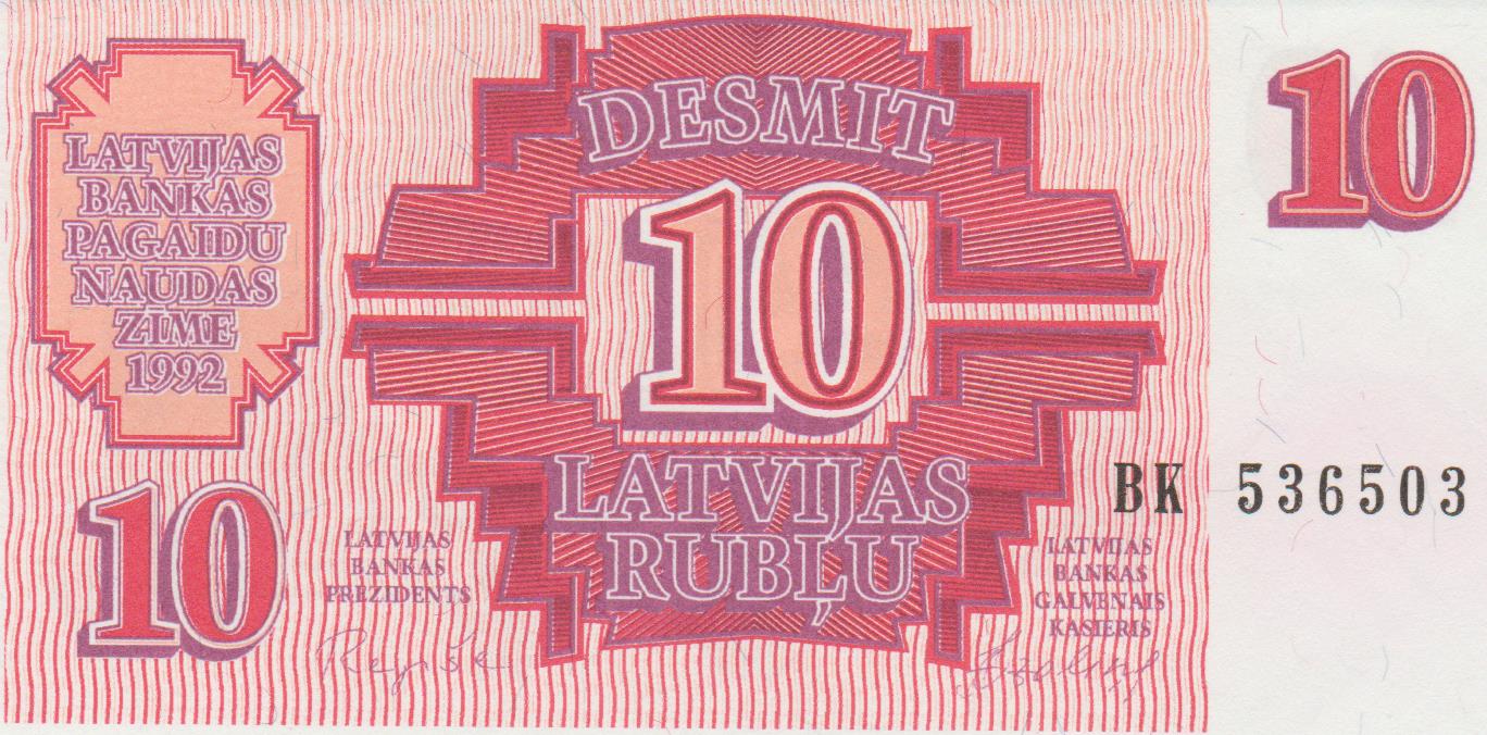 P 38 – LETONIA 10 RUBLIS 1992 FE