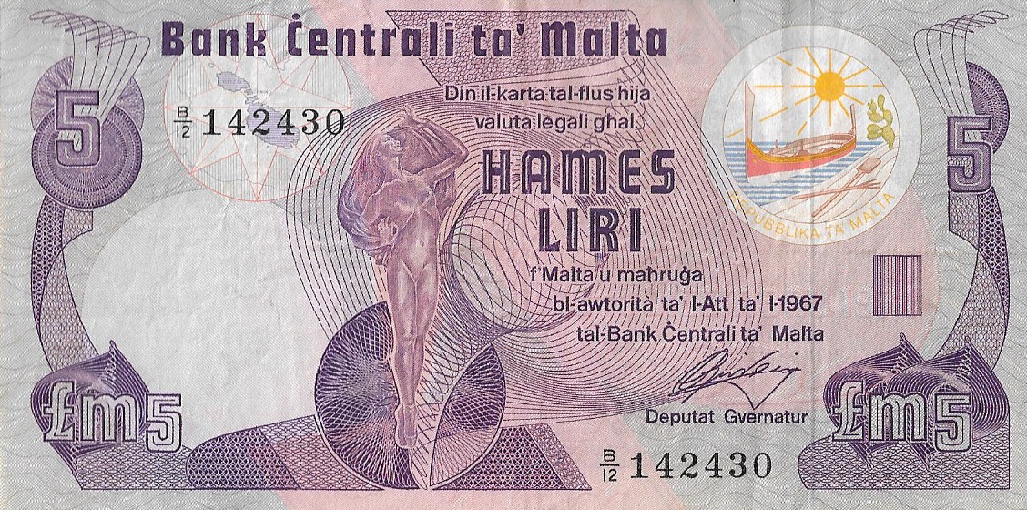 P 35a – MALTA 5 LIRI/POUNDS 1989 MBC