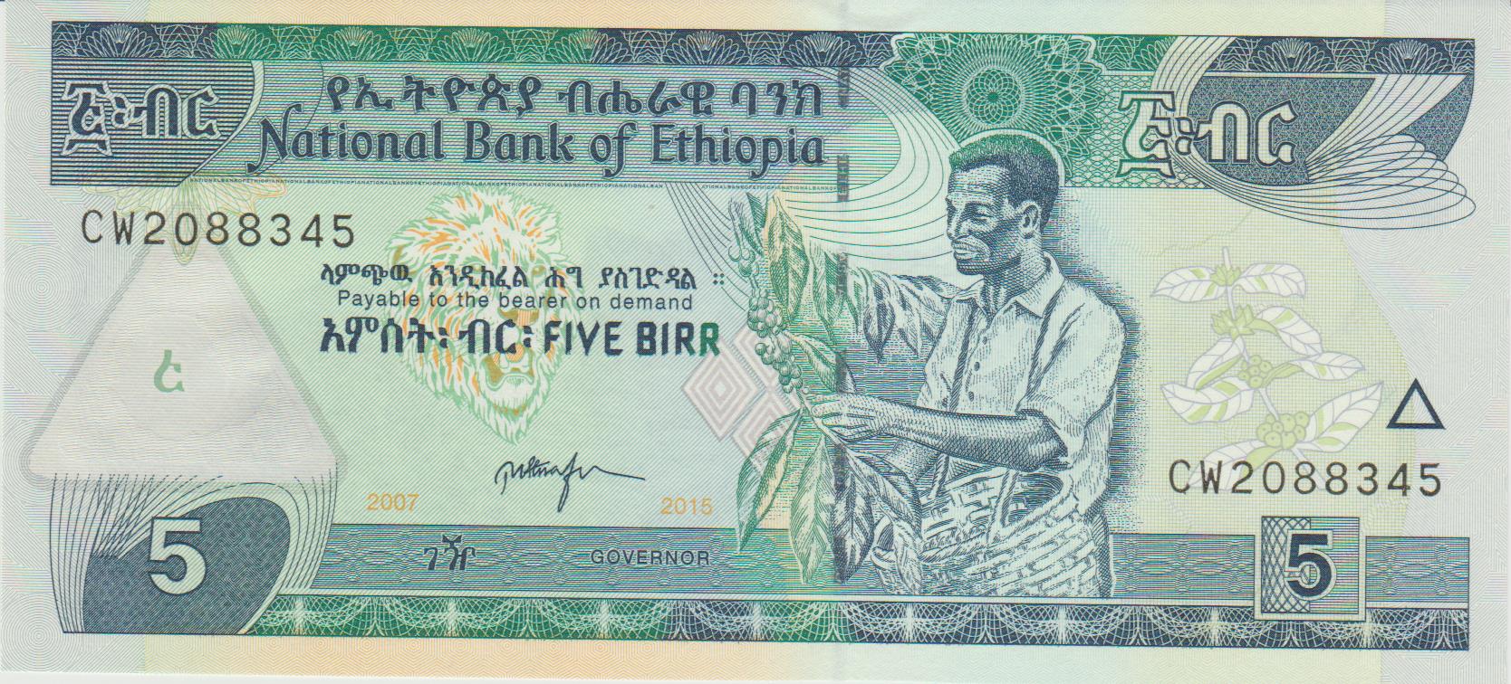 P 47g- ETHIOPIA 5 BIRR 2007 (2015) FE