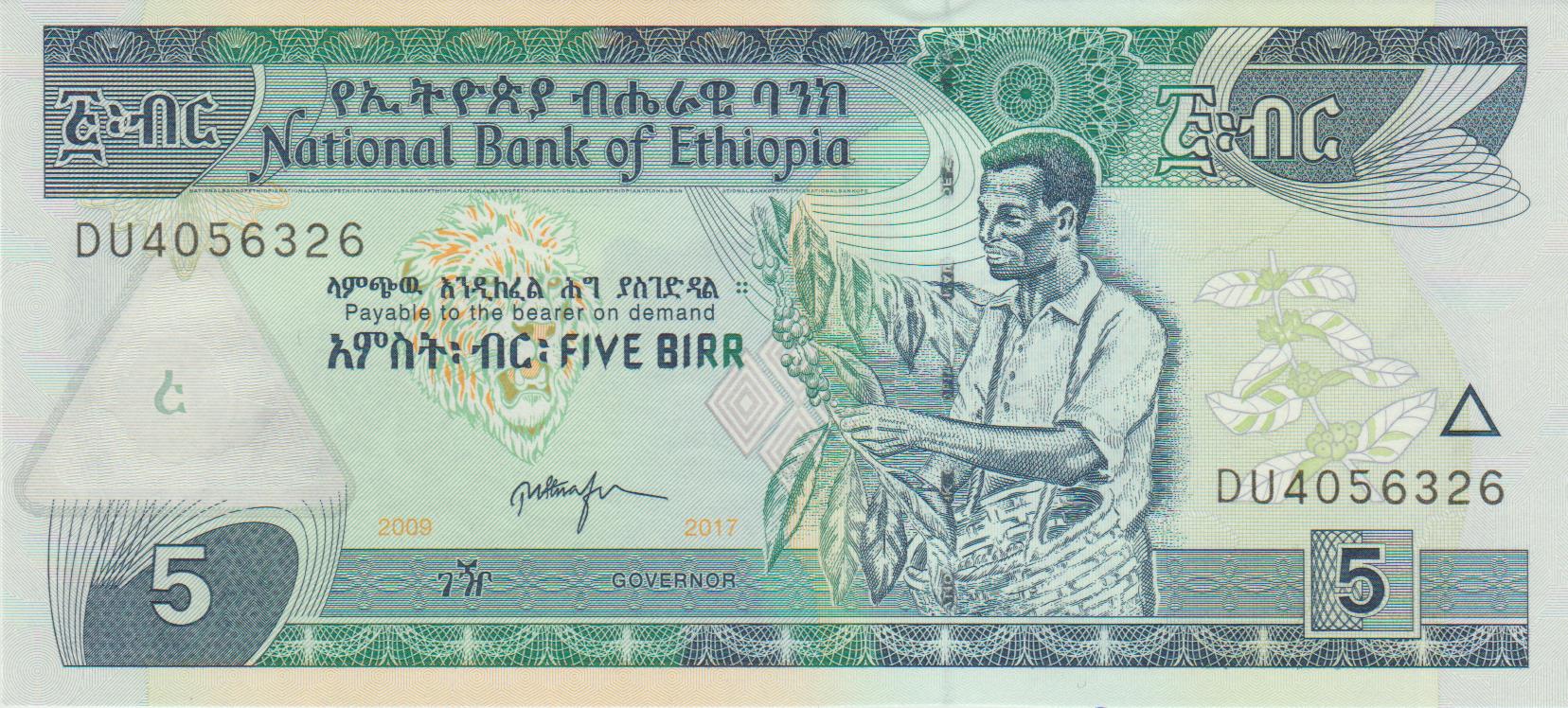 P 47h- ETHIOPIA 5 BIRR 2009 (2017) FE