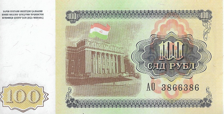 P 6 – TAJIQUISTAO 100 ROUBLE 1994 FE