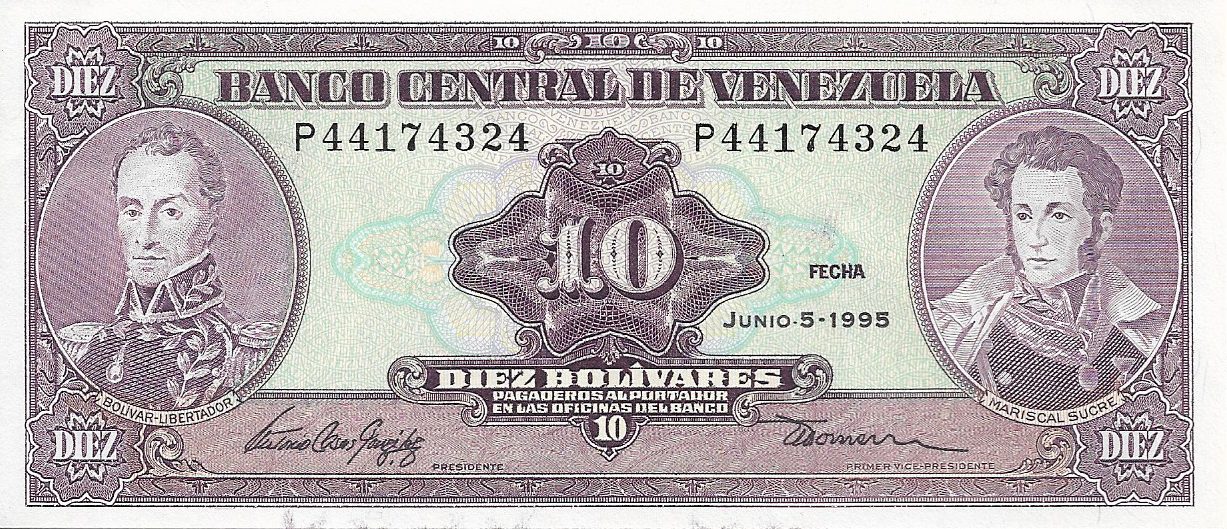 P 61d- VENEZUELA 10 BOLIVARES 1995 FE