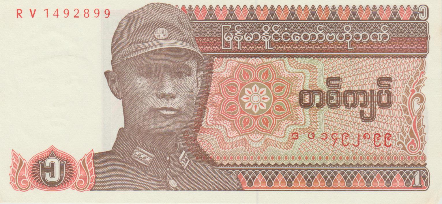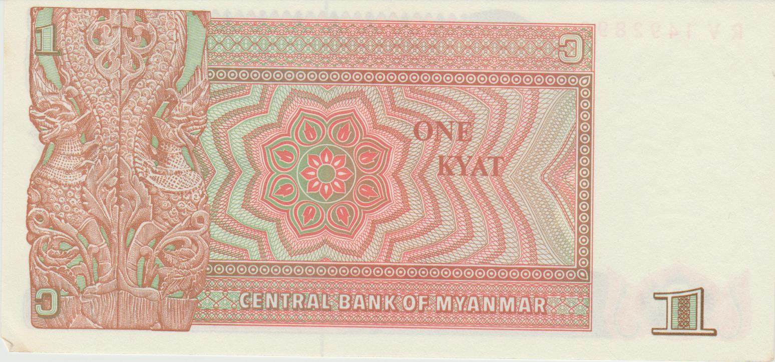 P 67 – MYANMAR 1 KYAT 1990 FE