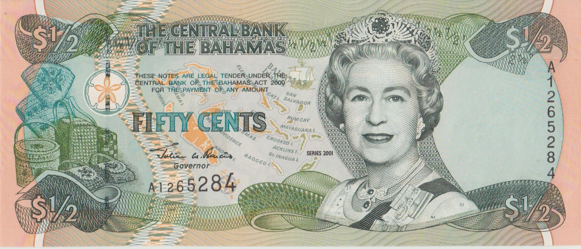 P 68 – Bahamas – 1/2 Fifty Cents – 2000 – FE