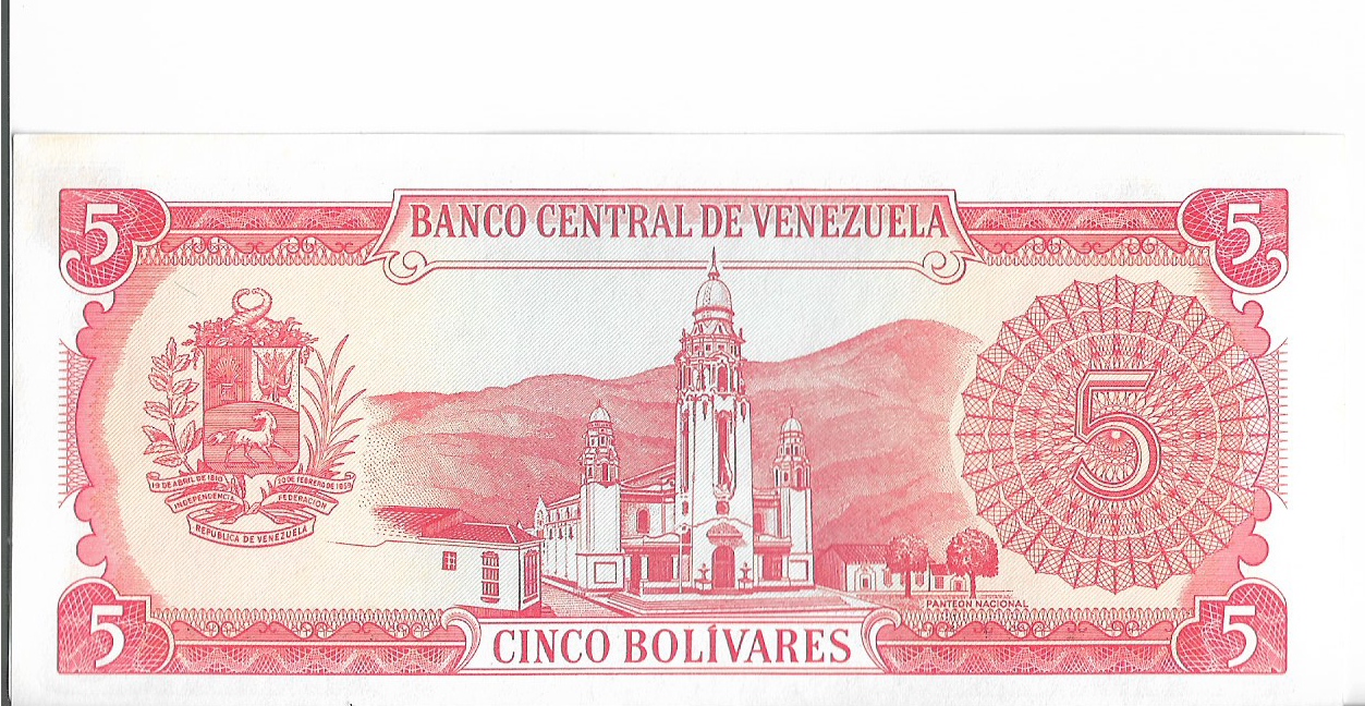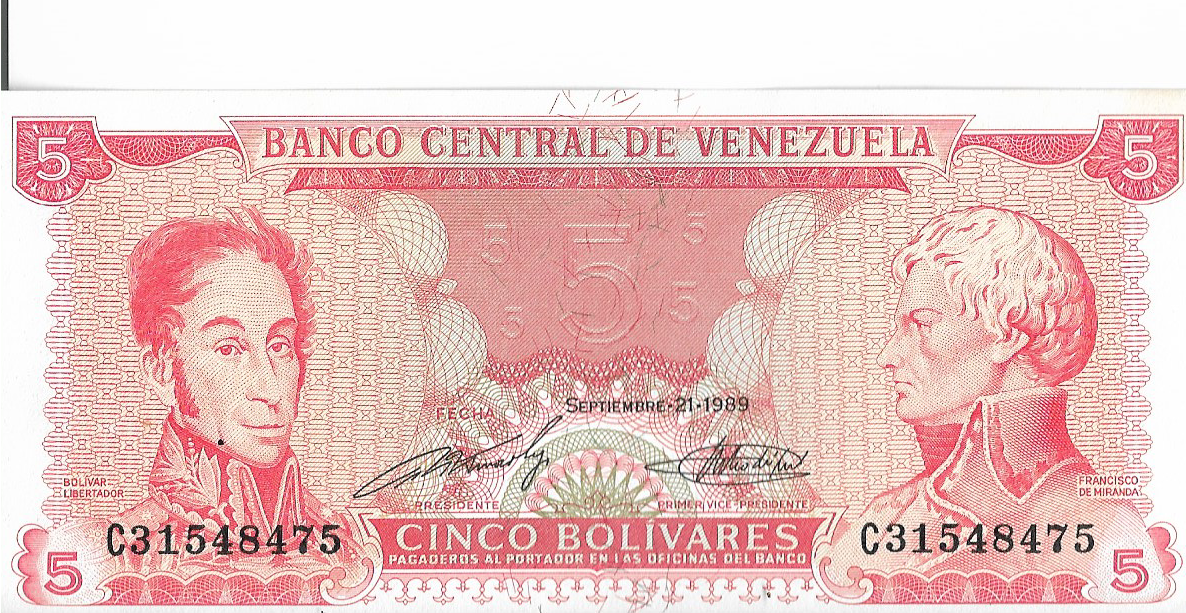 P 70b – VENEZUELA 5 BOLIVAR 1989 FE