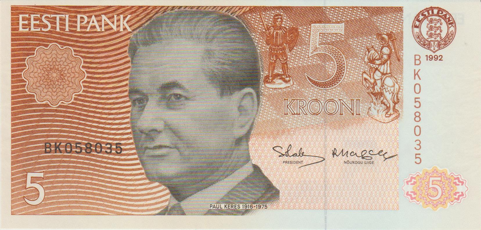 P 71 – ESTONIA 5 KROONI 1992 FE