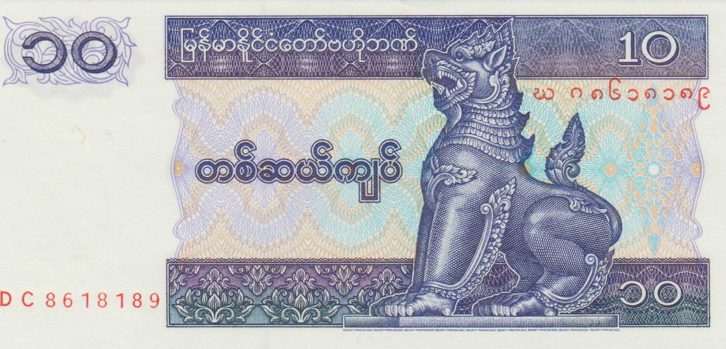 P 71 – MYANMAR 10 KYATS 1997 FE