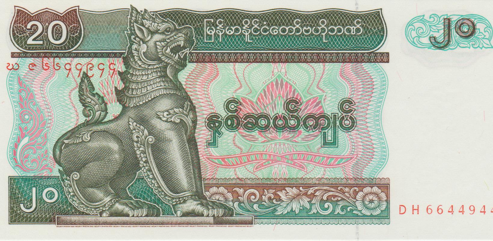 P 72b – MYANMAR 20 KYATS 1994 FE