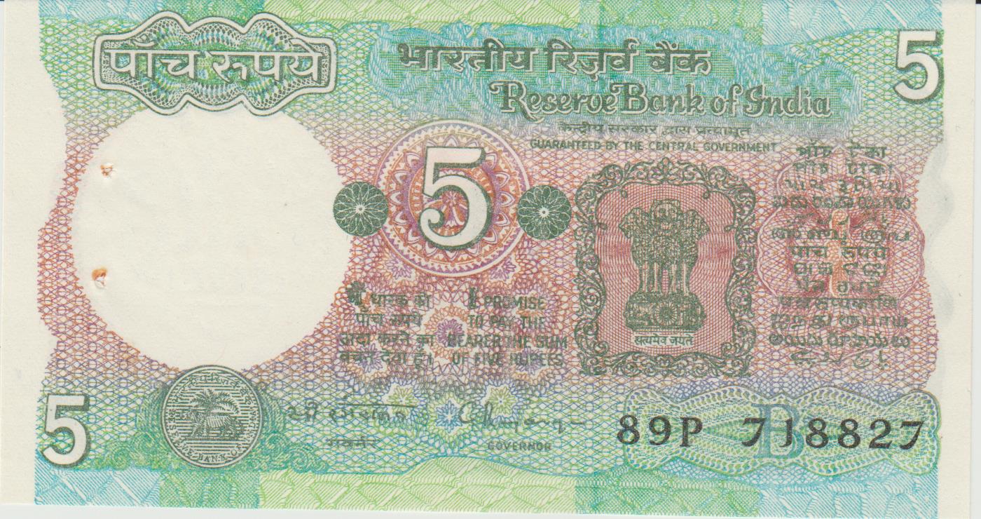 P 80r – INDIA 5 RUPEES MBC (com furos)