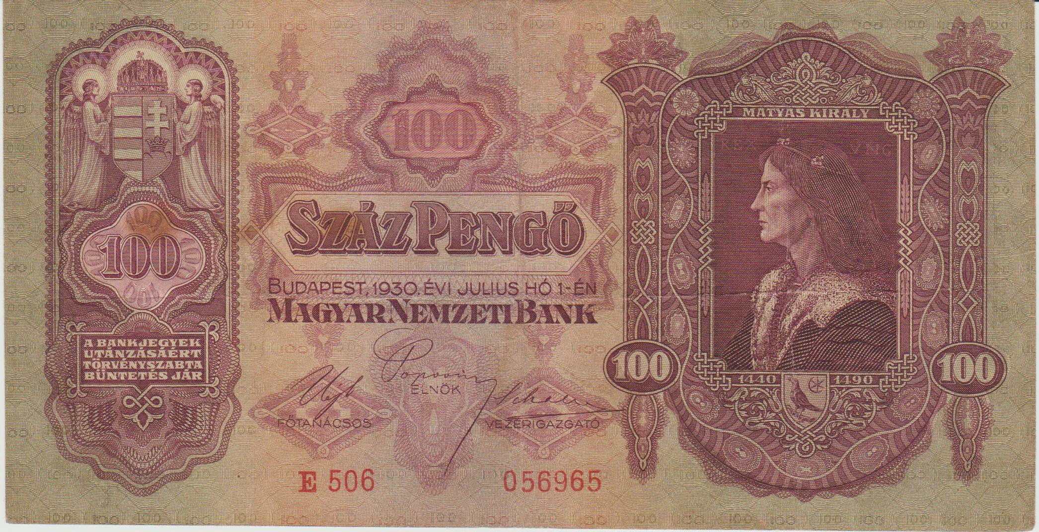 P 98 – HUNGRIA 100 FORINT 1930 MBC