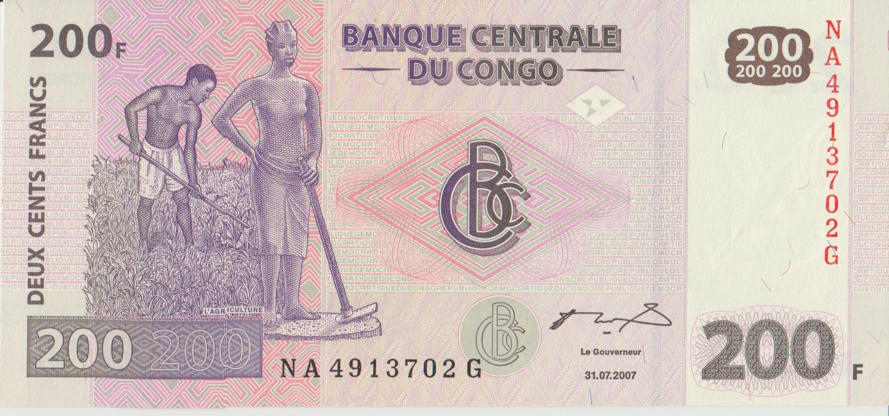 P 99a - REPUBLICA DO CONGO 200 FRANCS 2007 FE quantidade