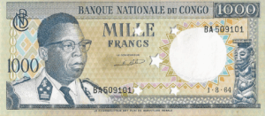 P08 – REPUBLICA DO CONGO 1000 FRANCS 1964 FE (com manchas) CANCELADA