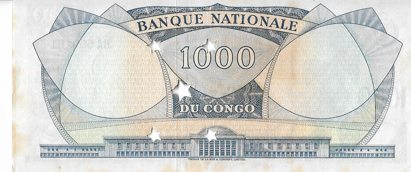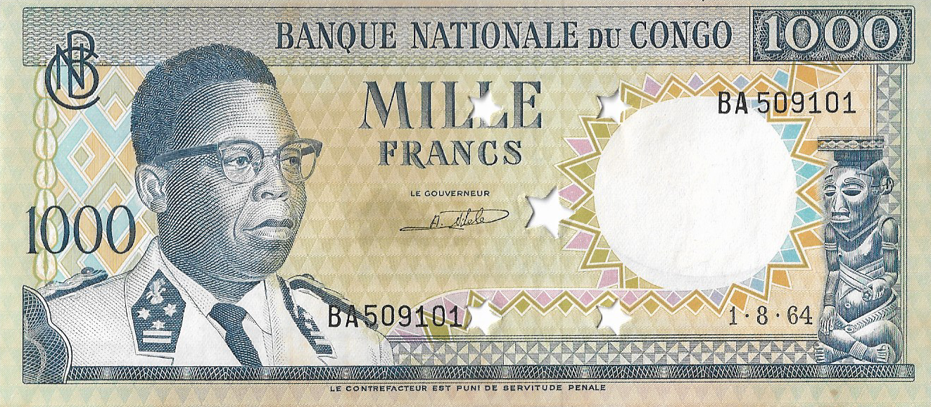 P08 - REPUBLICA DO CONGO 1000 FRANCS 1964 FE (com manchas) CANCELADA quantidade