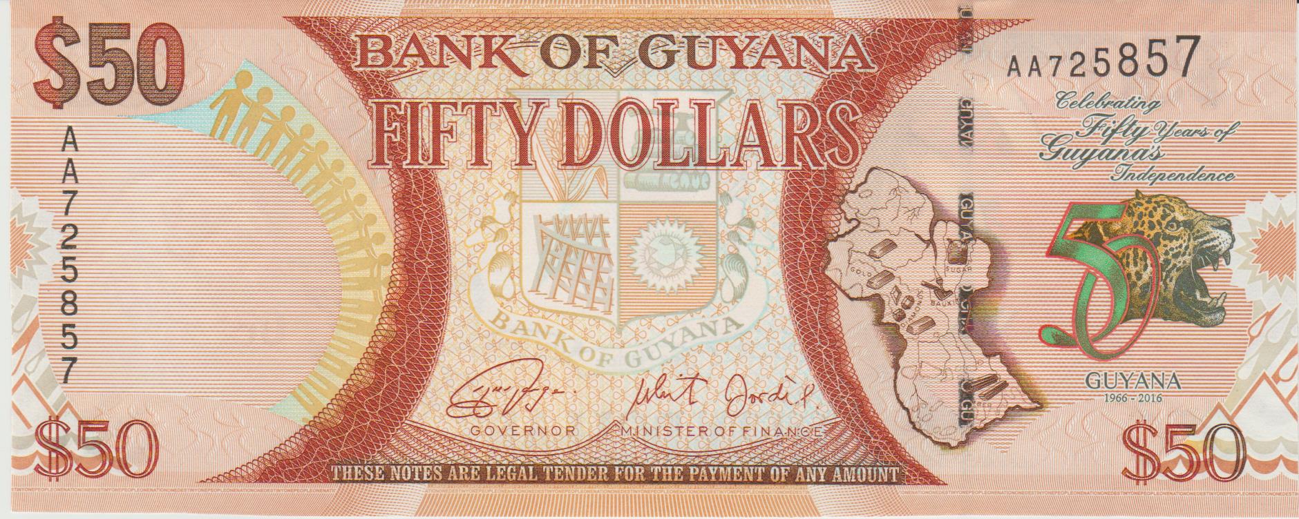 P41- GUYANA 50 DOLLARS 2016 FE quantidade