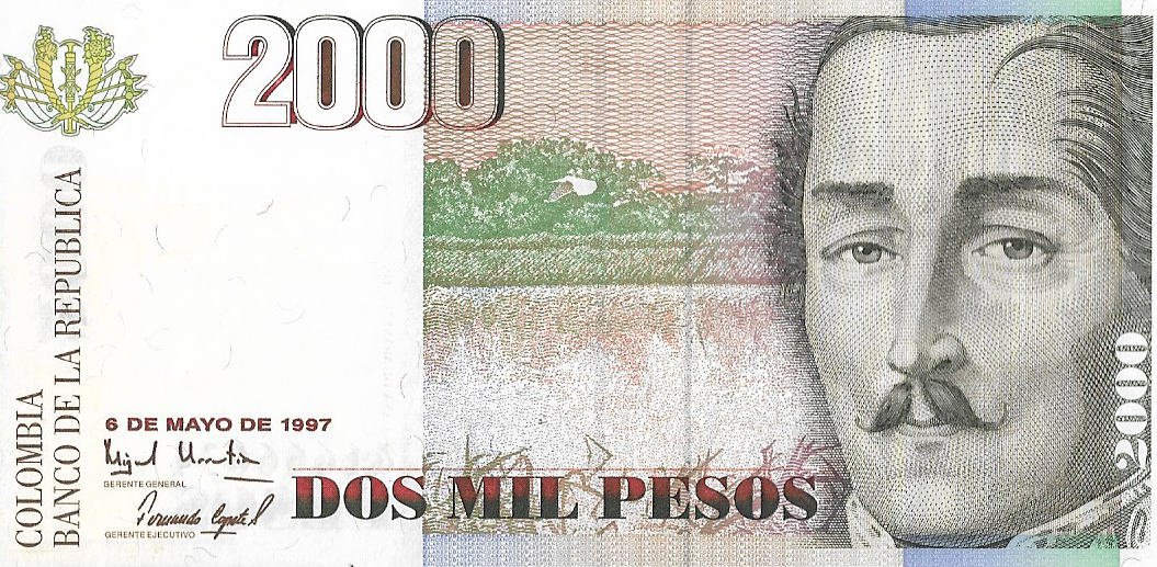 P445 – Colômbia – 2000 Peso Ouro – 1997- FE