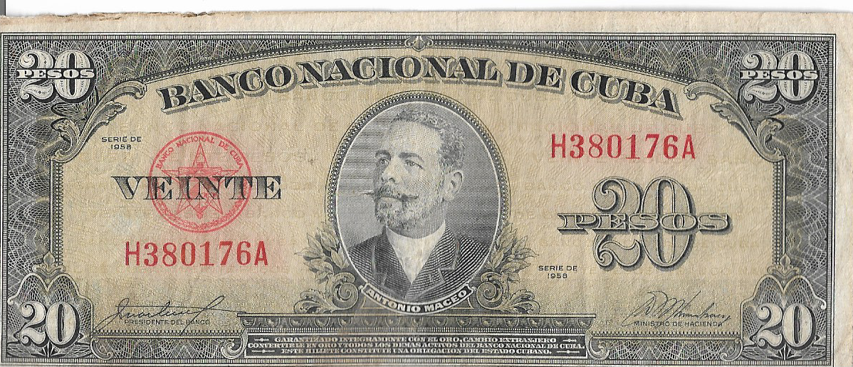 P80b - CUBA 20 PESOS 1958 MBC quantidade